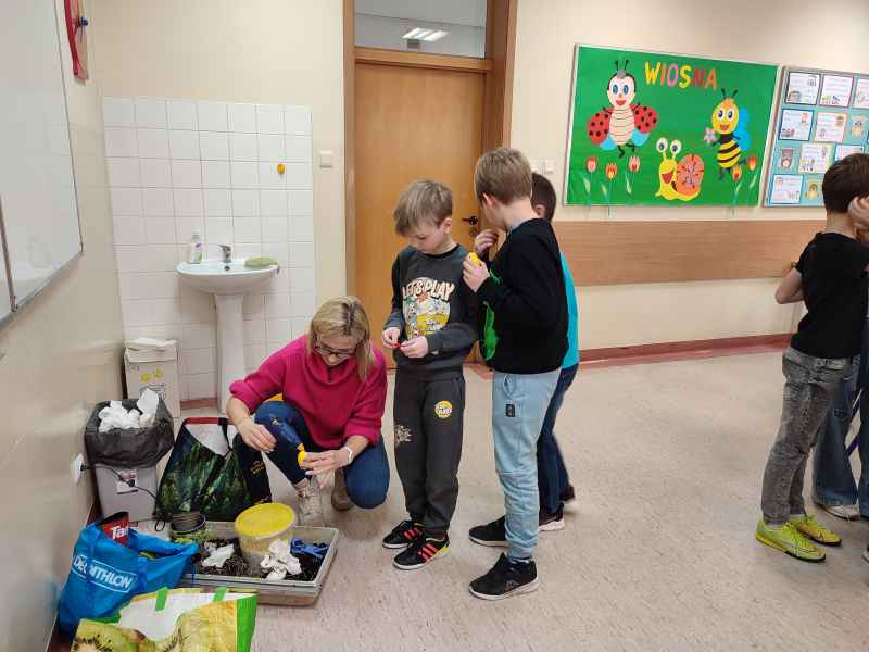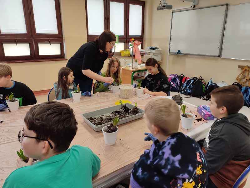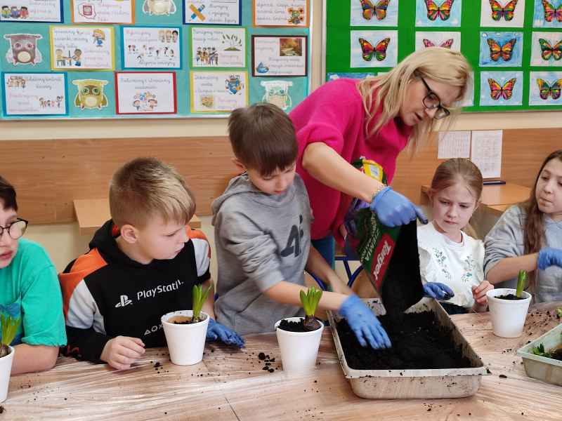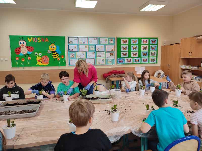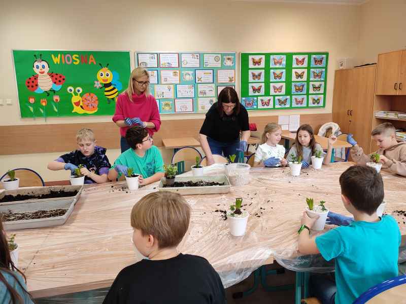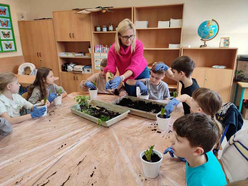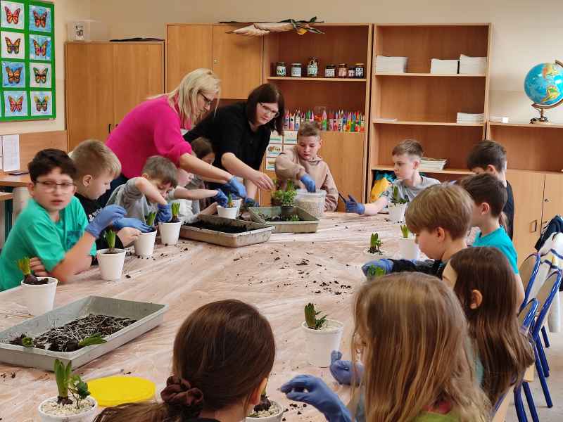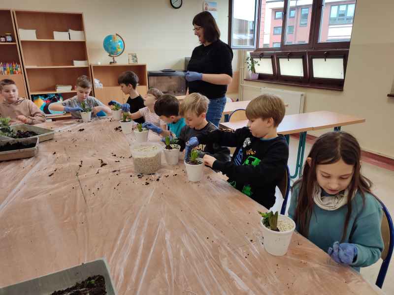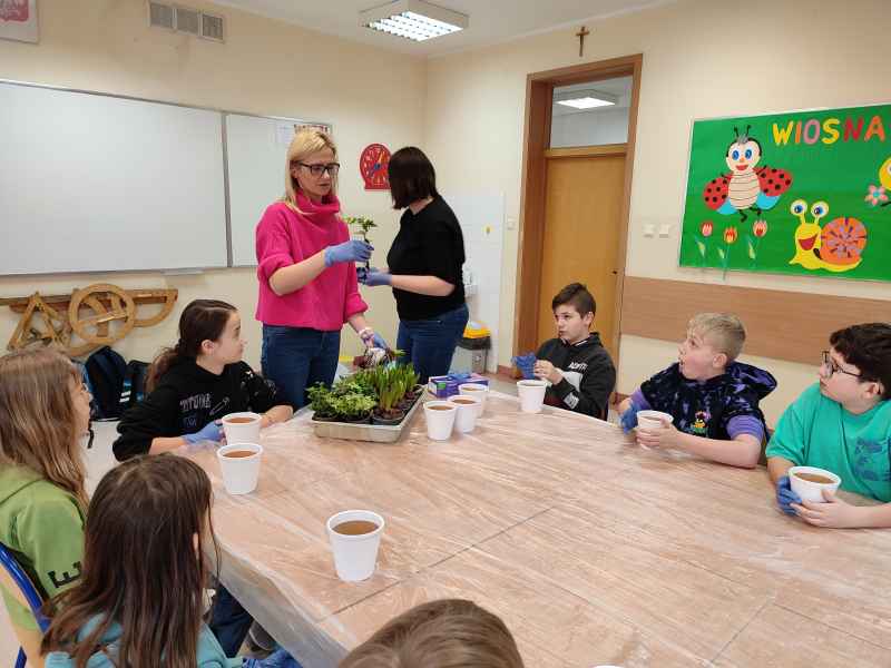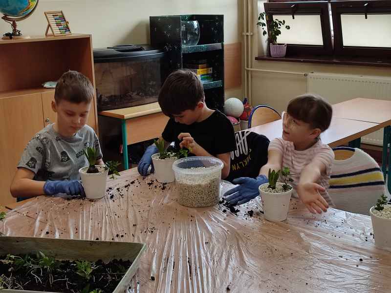 W poniedziałek 25 marca, od samego rana, uczniowie klasy 3C intensywnie pracowali pod okiem pań z Rady Rodziców: p. Eweliny Blaszke i p. Magdaleny Grubba, które zorganizowały i przeprowadziły wielkanocne warsztaty. Pierwszy etap prac polegał na zadaniu z zakresu ogrodnictwa.