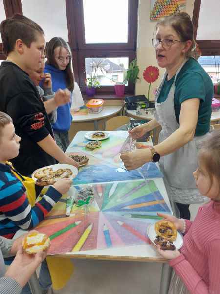 Dnia 20 i 25 marca 2024 roku w laboratoriach przyszłości w Szkole Podstawowej nr 2 przy ulicy Leśnej 35 w godzinach od 7.00 do 7.45 i od 14.30 do 17.00 zostały przeprowadzone warsztaty pieczenia tradycyjnych mazurków wielkanocnych.