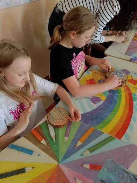 27 marca 2024 roku uczniowie klasy 4b wzięli udział w warsztatach String Art (Sztuka Nici). Dzieci za pomocą nici "namalowały" piękne króliczki. Wzór został przygotowany za pomocą gwoździ na kawałku drewna. Warsztaty zorganizowane były dzięki wsparciu Rady Rodziców, a na zajęciach towarzyszyły dzieciom Pani Beata Konkol i Pani Monika Skulska. Dziękujemy za pomoc i zaangażowanie.