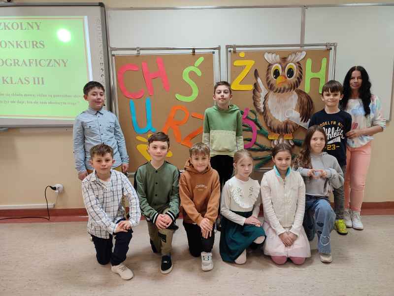 W kwietniu odbył się Szkolny KonkursOrtograficzny klas III, którego organizatorkami były: pani Anita Walkusch i pani Aleksandra Szmidke. W konkursie uczestniczyło dziewięć osób, po troje uczniów z każdej klasy trzeciej, którzy zostali wcześniej wyłonieni w klasowych eliminacjach.
