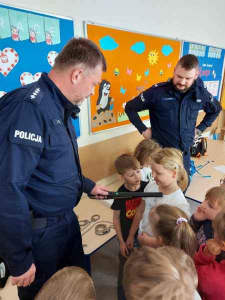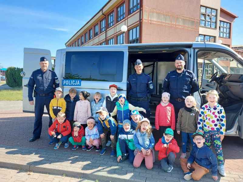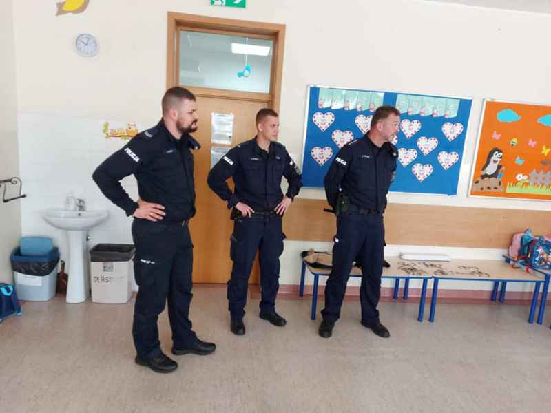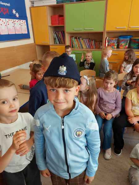 Dziękujemy Panom funkcjonariuszom, którzy wykazali się empatycznym podejściem do dzieci, cierpliwością oraz uśmiechem podczas całego spotkania. Dziękujemy za wszystkie przekazane informacje na temat pracy policjanta oraz zachowania bezpieczeństwa.