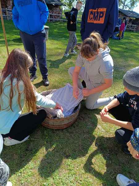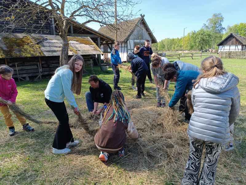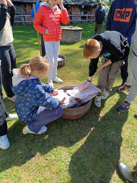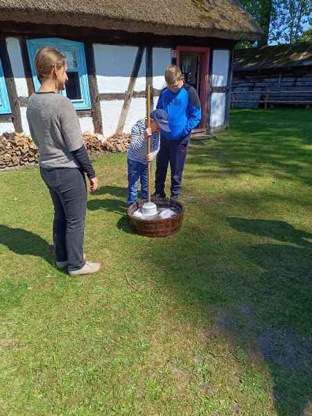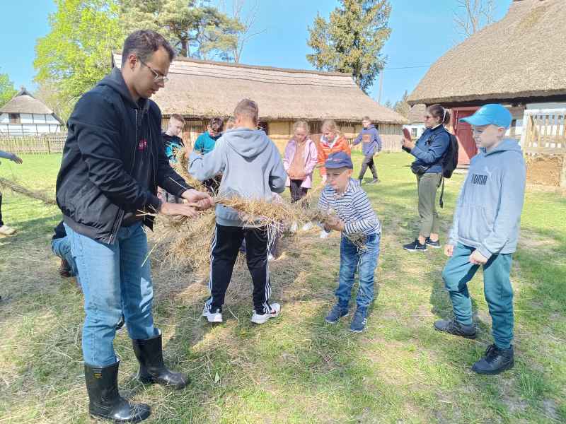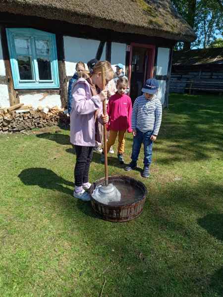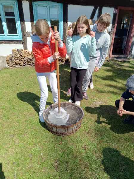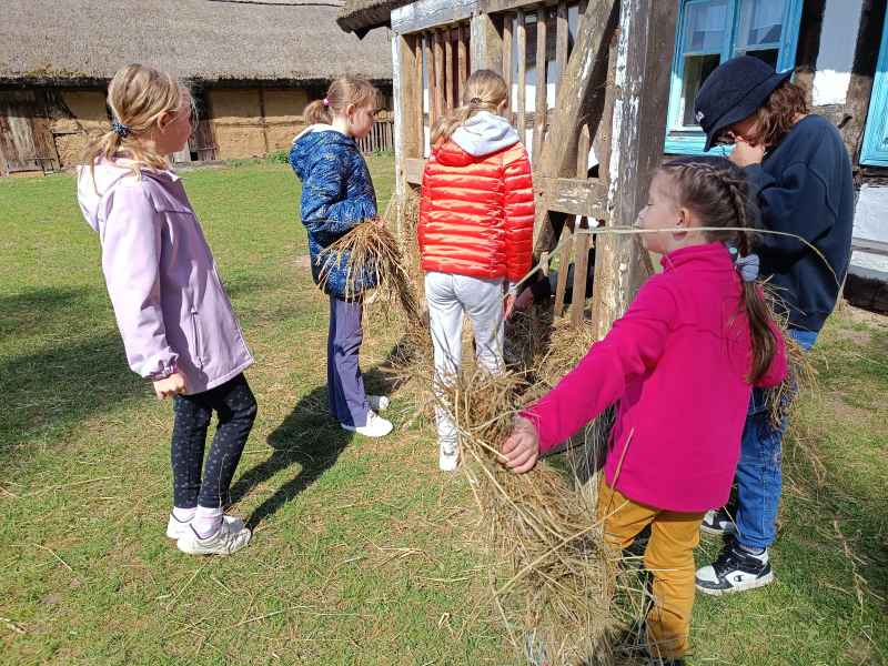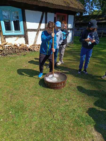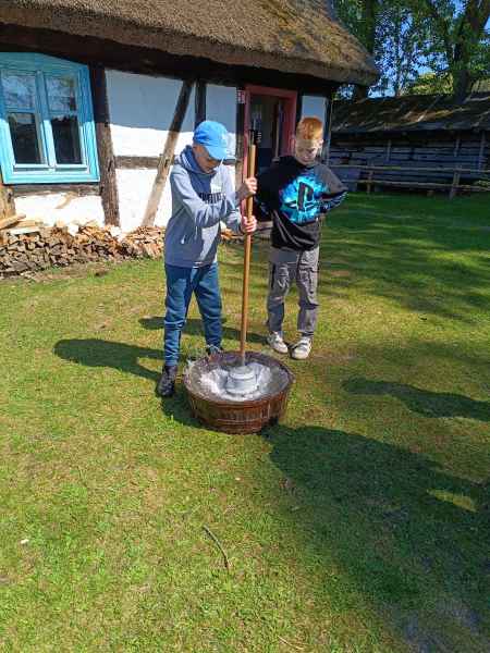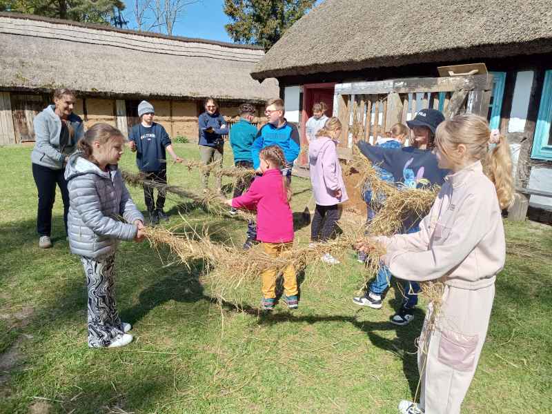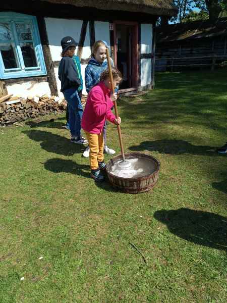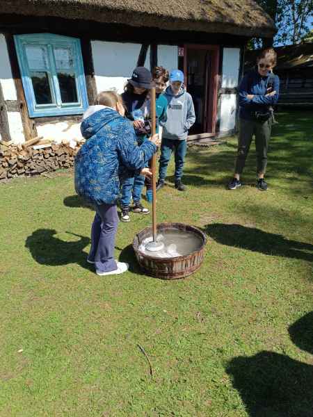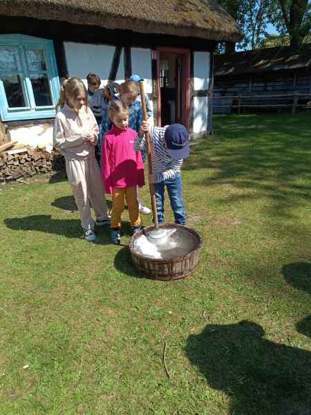 W ramach projektu grantowego, dnia 09 maja 2024 r., udaliśmy się na wycieczkę do skansenu w Klukach. Celem projektu jest integracja uczniów z różnych środowisk migracyjnych. W wycieczce wzięli udział uczniowie pochodzenia ukraińskiego, jak i kaszubskiego czy napływowego z innych części Polski. Gdy dojechaliśmy na miejsce dzieci zostały podzielone na dwie grupy: pierwsza wzięła udział w zajęciach pt.: „Wokół kuchennego pieca”.