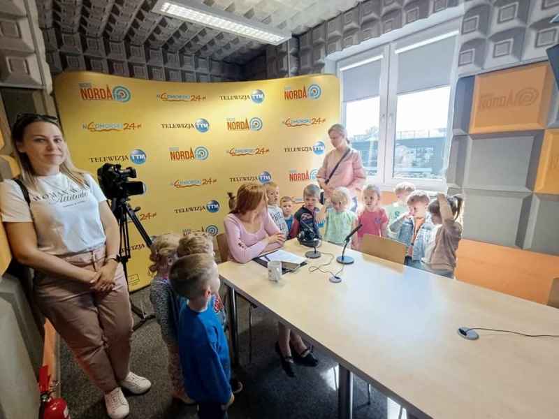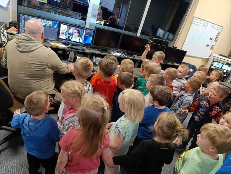 Dzisiaj dzieci z klas „0c” i „0d” wybrały się na wycieczkę do TTM - regionalnej stacji telewizyjnej w Wejherowie. Pierwszy raz wybraliśmy się w podróż komunikacją miejską. Dla większości dzieci była to pierwsza i ekscytująca podróż autobusem. W telewizji zwiedziliśmy studio gdzie nagrywane są między innymi programy informacyjne.