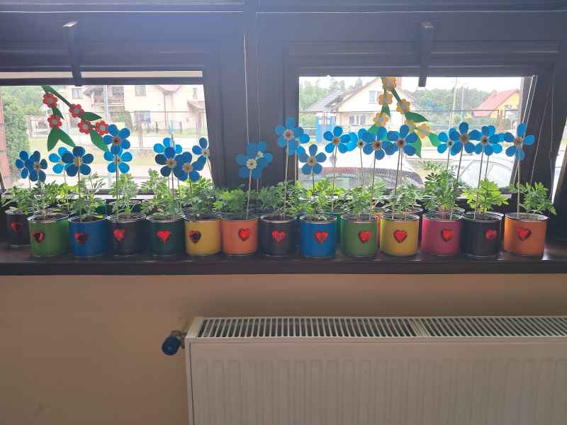 Radość była wielka, bo nic tak nie uszczęśliwia jak własnoręcznie wyhodowany kwiatek. Brawo Kochane Świetliczaki!!!