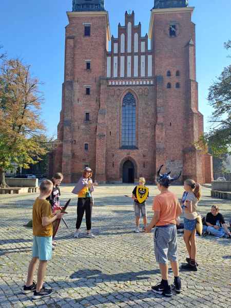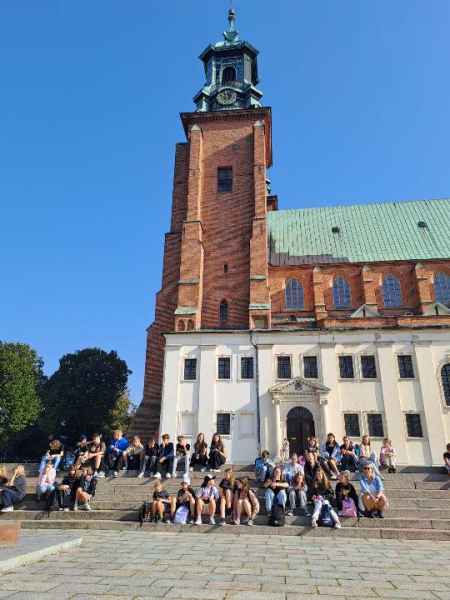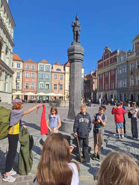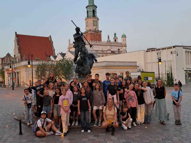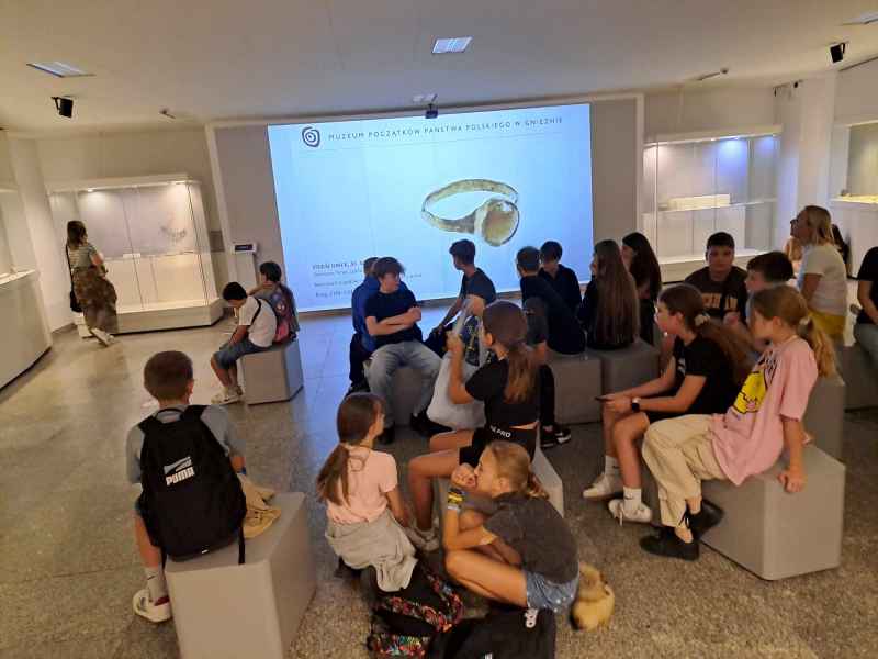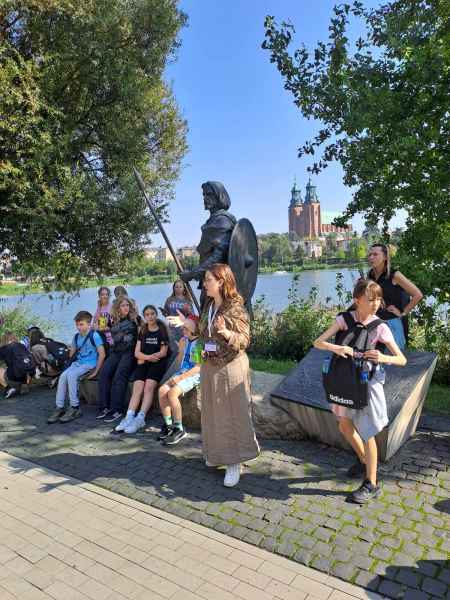 Podczas XXIX Festynu Archeologicznego mieliśmy okazję zobaczyć, jak 90 lat temu wyglądały badania półwyspu. Sam Biskupinwtedy, został określony Pierwszym Pomnikiem Historii. Słuchaliśmy opowieści animatorów o archeologach z lat 30 – tych XX wieku. Widzieliśmy rekonstrukcje wykopalisk, dawne artefakty, w tym auto prof. Kostrzewskiego – Citroen CT4. Ogromne wrażenie robiły na nas pokazy życia codziennego, zajęcia pierwszych rzemieślników, orka pradziejowa, tańce, rejsy statkiem po Jeziorze Biskupińskim czy walka wojów. Przeżyliśmy podróż przez tysiąclecia – od neolitu do wczesnego średniowiecza. Po noclegu w Wenecji pojechaliśmy do Gniezna. W pierwszej stolicy Polski poznaliśmy dzieje Bazyliki Prymasowskiej pod wezwaniem N.M.P. Podziwialiśmy Drzwi Gnieźnieńskie i słuchaliśmy opowieści o św. Wojciechu. Przeszliśmy „Szlak Piastowski” i szukaliśmy „królików” oraz pomników pięciu królów Polski. Na Wzgórzu Lecha stoi Muzeum Początków Państwa Polskiego. Tam obejrzeliśmy wystawę sztuki regionalnej oraz artefakty z X – XII wieku. Wieczorem 17.09 byliśmy w Poznaniu. Następnego dniauczestniczyliśmy w zabawie edukacyjnej „Detektywi Historii”. Na Ostrowie Tumskim odbyła się „walka” Mieszka Ii Bolesława Srogiego z Wieletami. W Warcie pławiono czarownice, których w średniowieczu w Poznaniu nie brakowało. Spotkaliśmy dwie z nich. W Kościele Jezuitów p.w. Najświętszego Serca Pana Jezusa i Matki Boskiej zobaczyliśmy zabytki sztuki barokowej. O 12.00 byliśmy na Starym Rynku. Hejnalista zagrał na trąbce, a na ratuszowej wieży pokazały się koziołki. Trykały się dwanaście razy. Przy pręgierzu spotkaliśmy poznańskiego kata i jego pomocników. Nikomu nie stała się krzywda. Na koniec odwiedziliśmy największą w Polsce Palmiarnię.