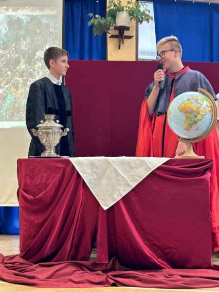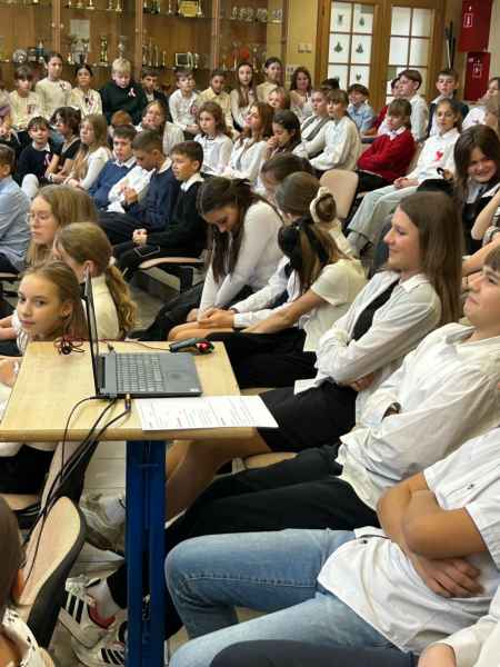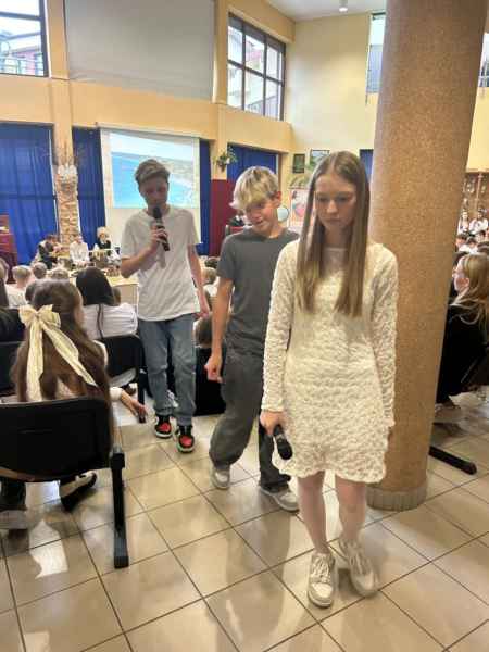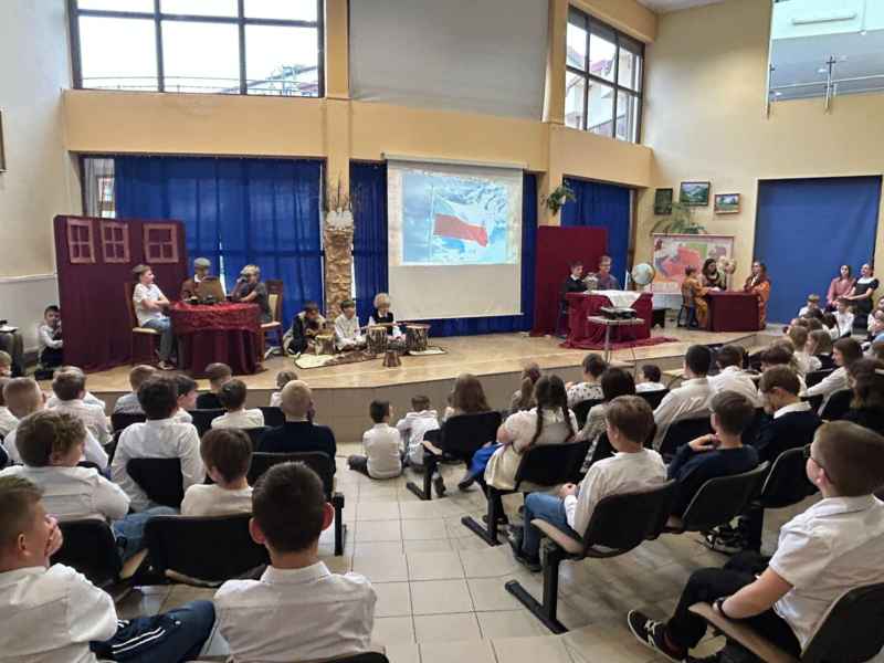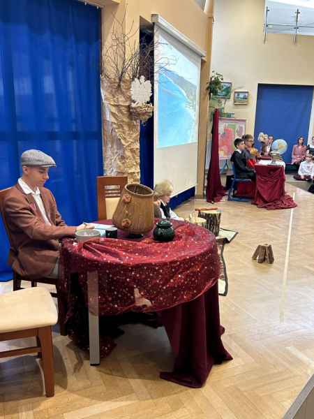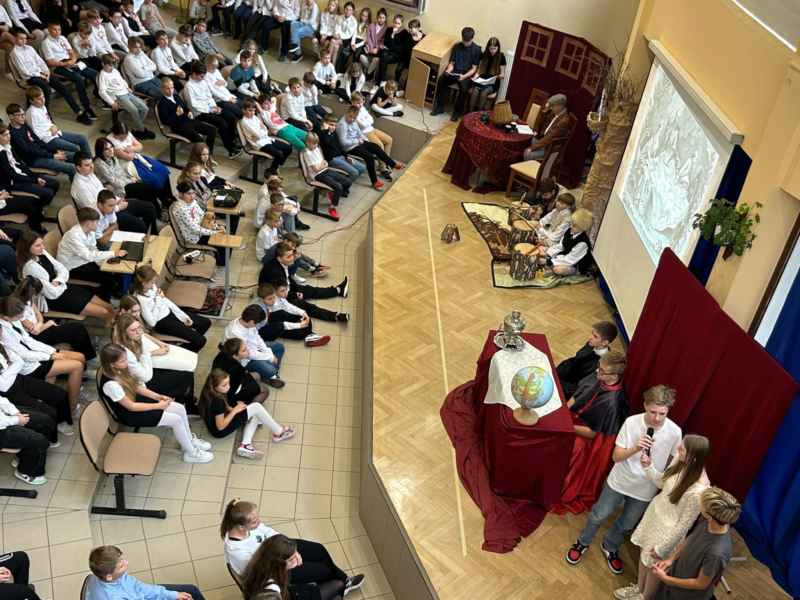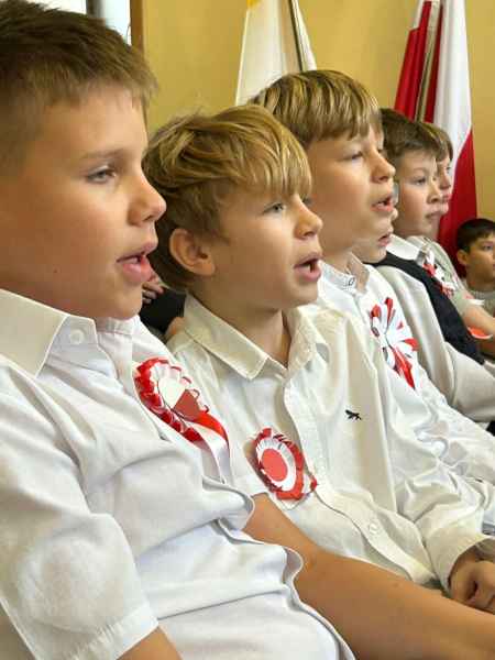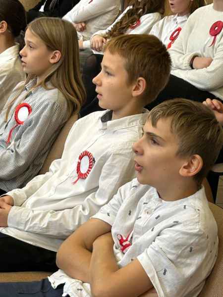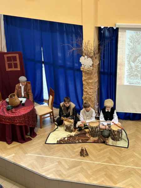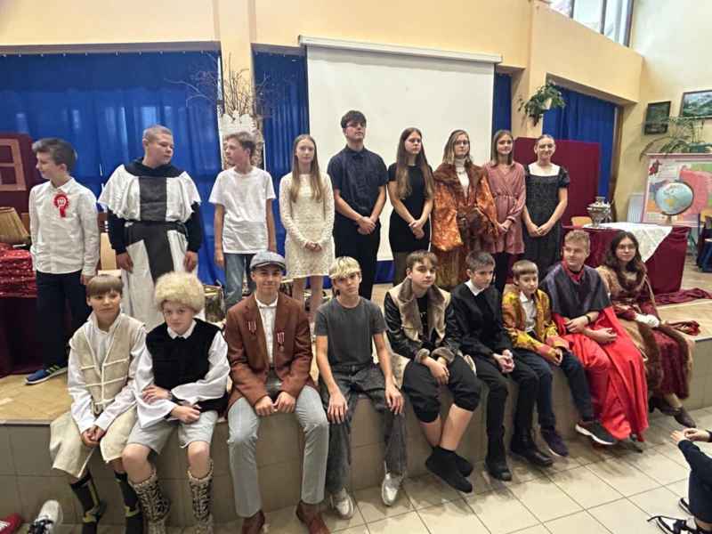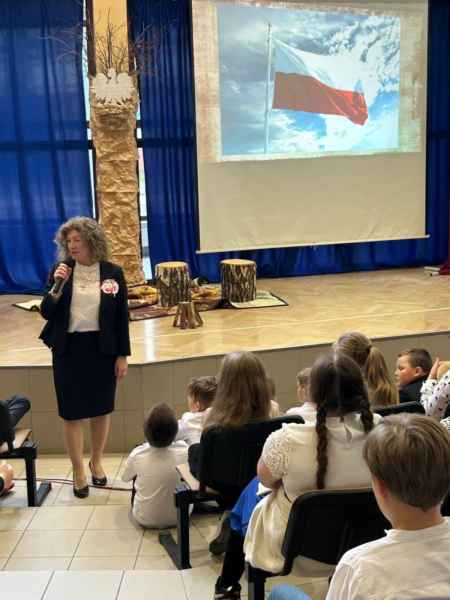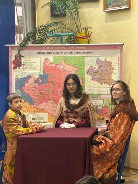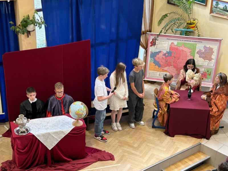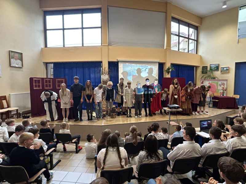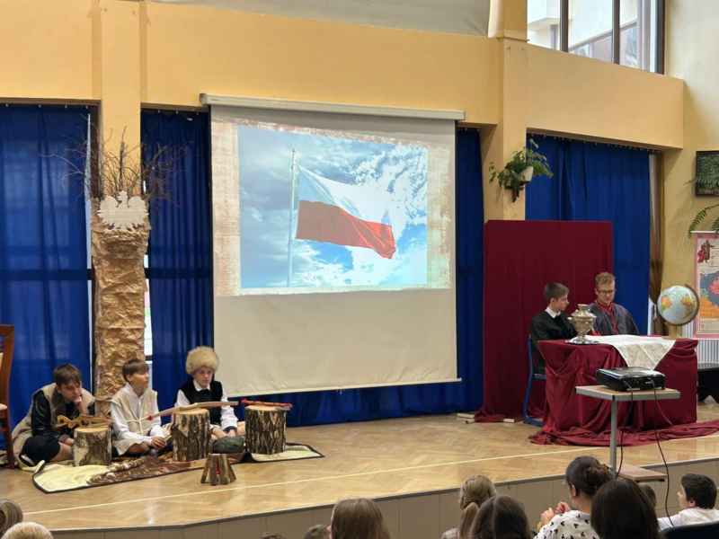 Następnie wstąpiliśmy na krótką chwilę, na naradę przed Bitwą pod Grunwaldem do króla Władysława Jagiełły. Później posłuchaliśmy tajnej narady trzech zaborców czyli carycy Katarzyny, cesarza Austrii oraz króla Prus. Na koniec usłyszeliśmy, że Józef Piłsudski przyjeżdża do Polski. Bardzo wartościowym elementem przedstawienia były pieśni patriotyczne, które zaśpiewała widownia. Ta uczta patriotyczna, uświetniła obchody Święta Niepodległości.