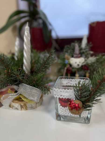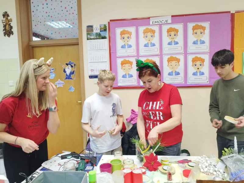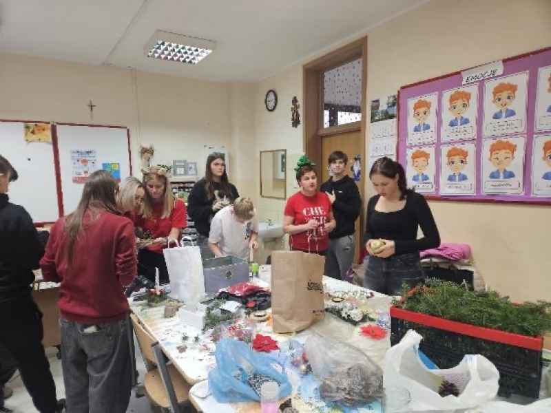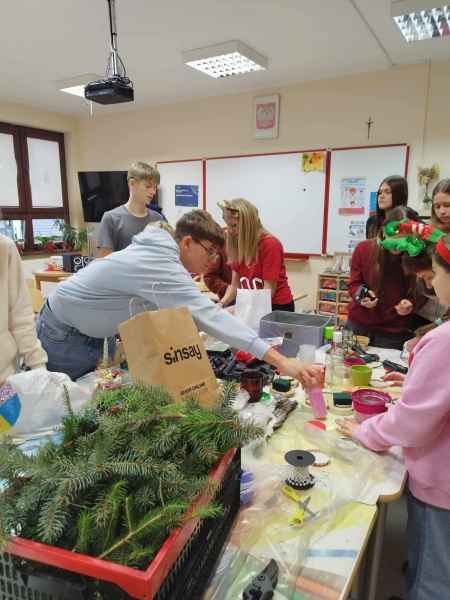 Warsztatach świąteczne w klasie 8a zakończone wspaniałymi ozdobami. Te piękne stroiki, decyzją uczniów, trafią do osób w Domach Opieki Społecznej. Niech i u nich zagości prawdziwie świąteczny nastrój.