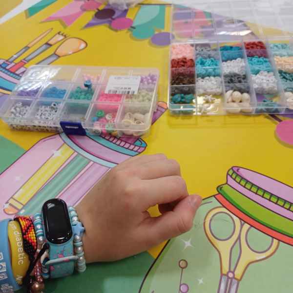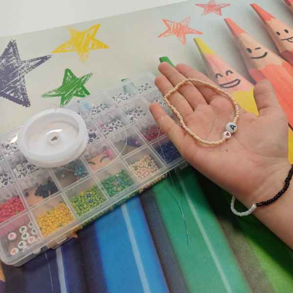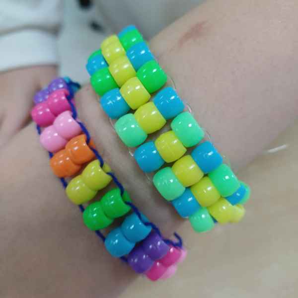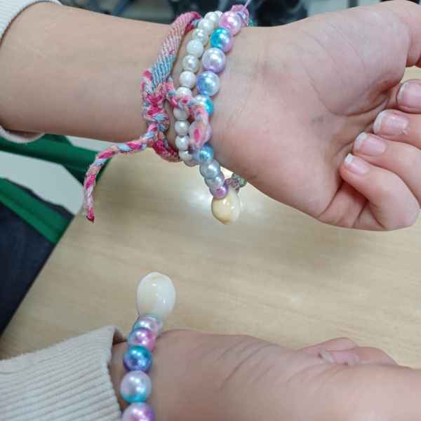 Na zajęciach nie zabrakło twórczych pomysłów, kreatywnych kolorowych bransoletek, dzieleniasię umiejętnościami oraz wspólnych rozmów na temat sposobu wykonania tak pięknych ozdób.