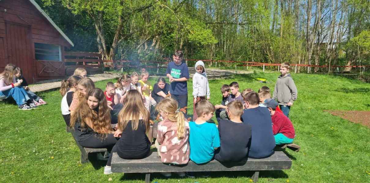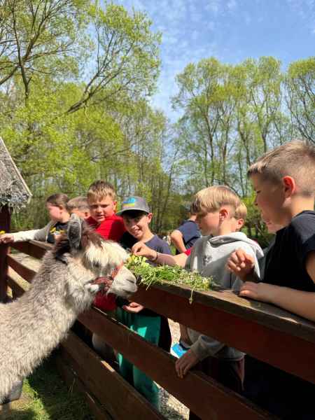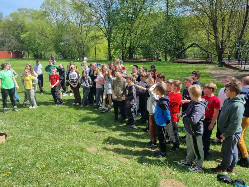 29 kwietnia uczniowie naszej szkoły wyruszyli do miejscowości Drzewina w celu integracji grup klasowych. W wycieczce brały udział klasy: 5a, 5b, 5c, 4c. Uczestnicy wyjazdu w podziale na grupy mieli okazję uczestniczyć w ponad 7 konkurencjach sportowych, zagadkach logicznych, zadaniach grupowych oraz indywidualnych w terenie. Zadania wymagały od grup dobrej komunikacji ,współpracy i koncentracji. Uczniowie uruchamiali zmysły dotyku, słuchu, węchu.
