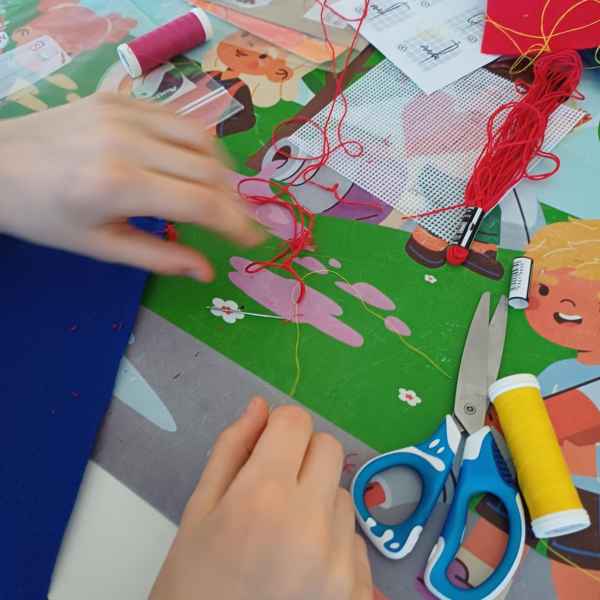 Niektórzy uczniowie zabrali swoją nową pasję do domu. Haftowanie stało się okazją do wspólnego spędzania czasu z mamą, babcią czy siostrą – dzielenia się umiejętnościami i radością z tworzenia.