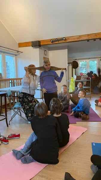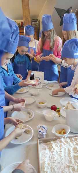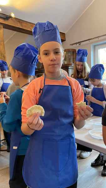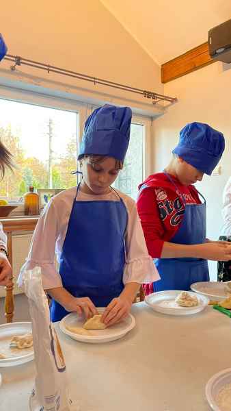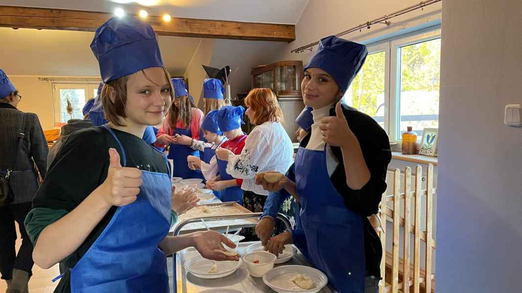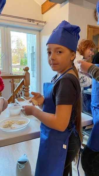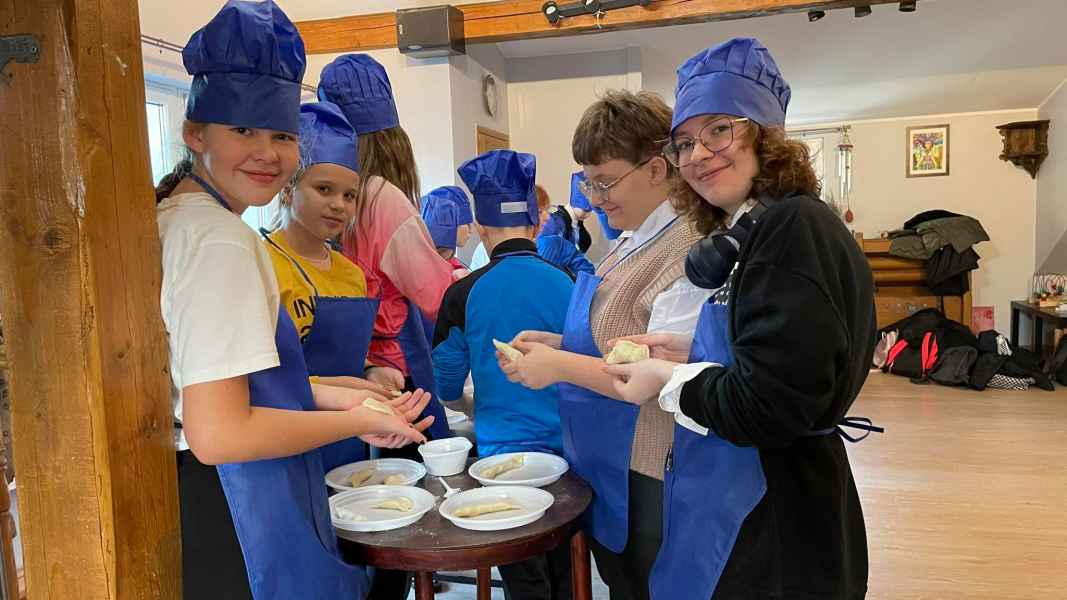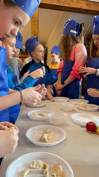 Dzieci i młodzież pod opieką siostry Maryny Shiakhtsiuk i Hanny Dettlaff uczyły się przygotowania ciasta, wkładania farszu w postaci białego sera lub jabłek oraz lepienia pierogów. Kiedy danie gotowało się uczniowie słuchali opowieści o duchach kaszubskich i związanych z nimi dawnymi zwyczajami oraz mogły obejrzeć, a nawet dotknąć naczyń kuchennych już dzisiaj nieużywanych jak, np. drutowanych garnków czy sita. Wielkim zainteresowaniem cieszyły się także nosidła i każdy mógł spróbować noszenia na nich, np. dwóch plecaków.