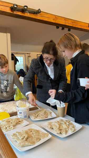 Przygotowane przez uczniów pierogi smakowały wyśmienicie z cukrem i kwaśną śmietaną, a niektórzy z uczestników zaplanowali sprawdzenie tej nowej umiejętności w domu.
