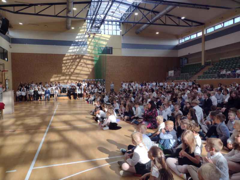 Szkolne obchody Święta Edukacji Narodowej odbyły się w naszej szkole 10 października br. Tego dnia spotkaliśmy się w hali widowiskowo - sportowej, aby podziękować pracownikom naszej szkoły. Podczas uroczystości obejrzeliśmy przedstawienie pt.: „Po co nam szkoła?” przygotowane przez koło teatralne, montaż słowno- muzyczny w wykonaniu klas 2a i 2b oraz niespodziankę muzyczną od klas 5a i 5d.