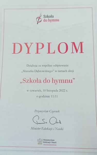O godzinie 11.11 włączyliśmy się w ogólnopolską akcję "Szkoła do hymnu" i odśpiewaliśmy uroczyście hymn państwowy.