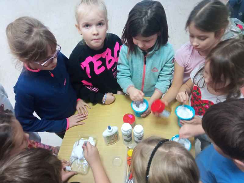 "Zima jest po to, aby dzieci bałwany mogły sobie lepić..." a co zrobić, kiedy śniegu brak? W czwartkowe popołudnie, w świetlicy szkolnej, uczniowie wraz z Paniami znaleźli sposób na ulepienie bałwana.