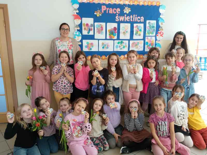Z okazji Dnia Kobiet, uczniowie świetlicy szkolnej zadeklamowali swoim koleżankom wiersz Tadeusza Kubiaka: