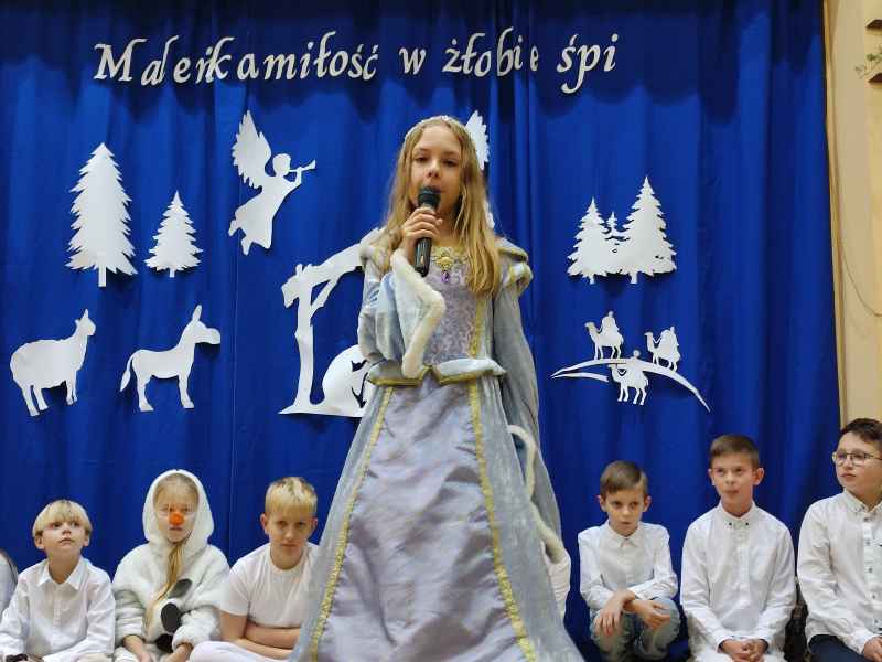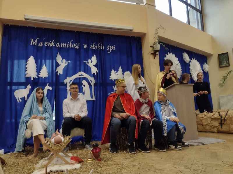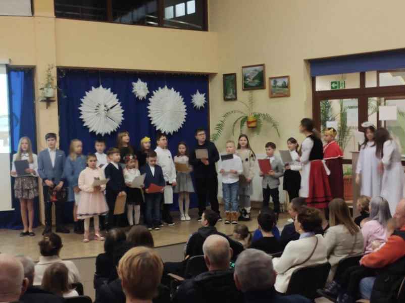 Dnia 22 grudnia 2023 r. wszystkie klasy tradycyjnie spotkały się przy wigilijnych stołach, wraz ze swymi wychowawcami. Zgodnie z tradycją łamali się opłatkiem, składając sobie życzenia. Klasa 7 A przybliżając historię narodzin Jezusa, wystawiła jasełka, pod kierownictwem pani Justyny Gąsiewicz.