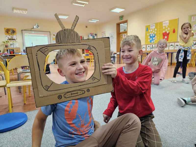 Podczas Dnia Telewizji w świetlicy szkolnej dzieci miały okazję poznać odpowiedzi na wyżej zadane pytania. Stworzyły nawet własne "Świetlicowe wiadomości"! Przede wszystkim musiały pokonać tremę i wystąpić przed rówieśnikami. Oto zdjęcia z "planu świetlicowych wiadomości"...