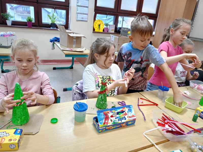 Czas Bożego Narodzenia to magiczny okres w którym nasi uczniowie chętnie podejmują wszelkie działania związane ze świętami. W piątek 15.12 w klasie 2a odbyły się warsztaty świąteczne organizowane przez Radę Rodziców na których wszystkie dzieci wykonywały choinki bożonarodzeniowe.