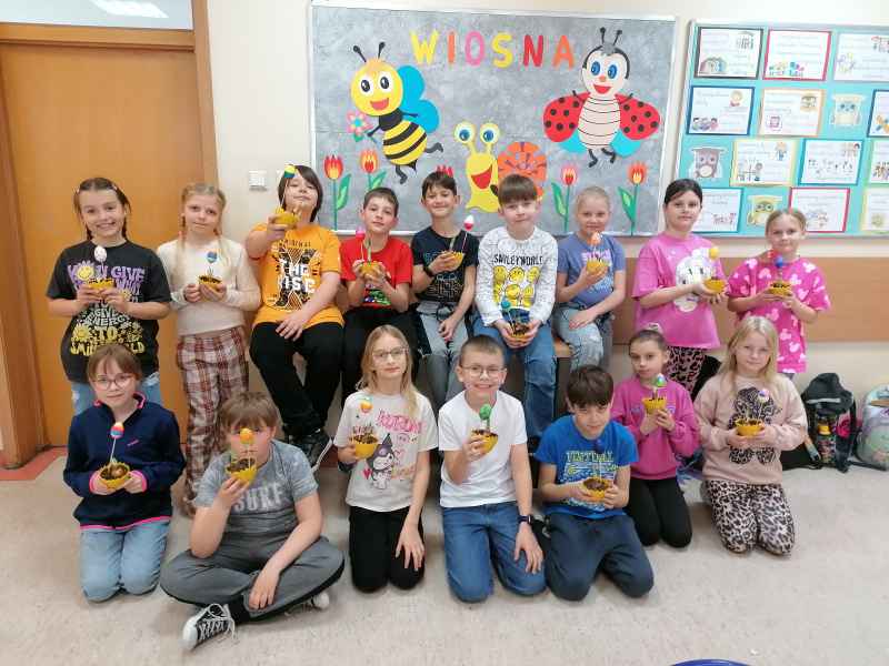 Dnia 10 kwietnia 2025 roku uczniowie klasy 3B uczestniczyli w świątecznych warsztatach, których fundatorem była Rada Rodziców. Dzieci przygotowywały dekoracje związane ze zbliżającymi się świętami. Pierwszym zadaniem do wykonania było pomalowanie farbami plakatowymi jajka styropianowego, aby stworzyć piękną, kolorową pisankę. Następnie dzici bawiły się w ogrodników i sadziły wiosenne roślinki cebulowe do specjalnejj doniczki.