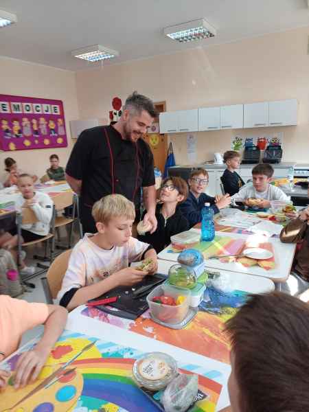 29 września w ramach zajęć rozwijających w Laboratoria Przyszłości klasy 5 g i f wzięły udział w lekcji kulinarnej ” Zdrowa kanapka” pod bacznym okiem nauczyciela - pani Bożeny Reszke. Wszystko działo się w naszej pracowni kulinarnej. Uczniowie zabrali się za skomponowanie swojej własnej, zdrowej i kolorowej kanapki.
