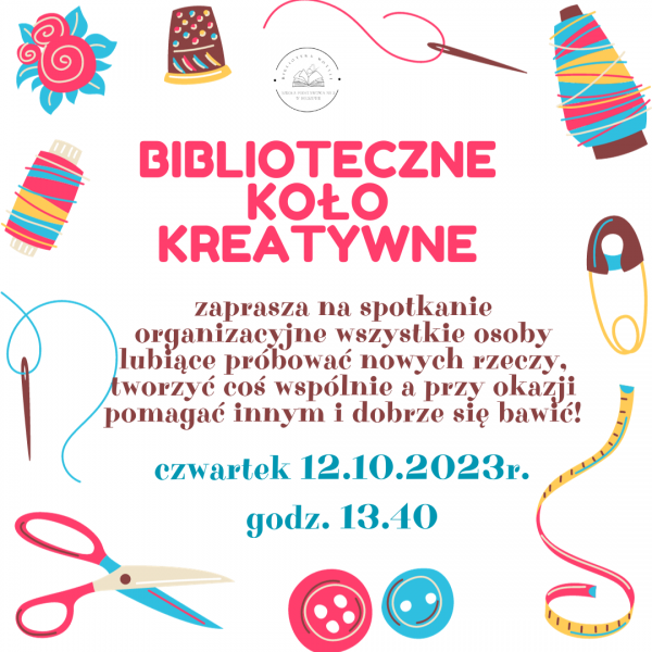 Biblioteczne Koło Kreatywne zaprasza na spotkanie organizacyjne wszystkie osoby lubiące próbować nowych rzeczy, tworzyć coś wspólnie a przy okazji pomagać innym i dobrze się bawić! Zapraszamy 12.10.2023r do Biblioteki Motyli!