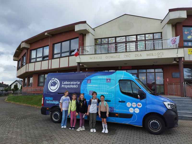 W ramach akcji mającej na celu aktywne i kreatywne wykorzystanie sprzętu objętego projektem „Laboratoria Przyszłości” oraz wzbudzenie zainteresowania nowoczesnymi technologiami 4 października do naszej szkoły zawitało Mobilne Laboratorium Przyszłości. W zajęciach udział wzięli uczniowie klasy IV c i klasy Vg.