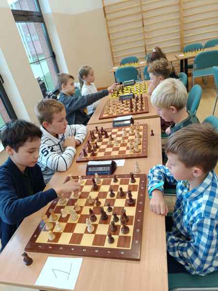 Dnia 05.10.2023 r. w naszej szkole odbyły się Gminne Igrzyska Dzieci i Młodzieży w Drużynowych Szachach. W igrzyskach wzięło udział pięć szkół z naszej gminy. Wszyscy zawodnicy dzielnie walczyli o punkty dla swoich drużyn. Naszą szkołę reprezentowali: Leon Galiniewski, Kacper Hinc, Wiktor Gajda, Nina Kanabaja oraz Julian Zawadzki w grupie młodszej oraz Beniamin Loewnau , Tymoteusz Bujakiewicz, Leon Stolc oraz Magdalena Styn w grupie młodzieżowej.