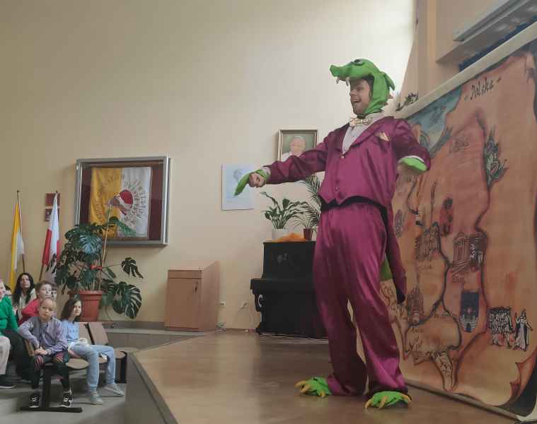 Najmłodsi uczniowie naszej szkoły mieli okazję obejrzeć wesoły spektakl pt. „Nowe przygody Smoka Wawelskiego - czyli Wisłą przez Polskę”.