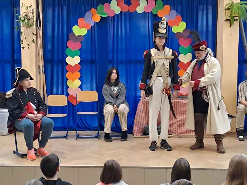 W dniu 14 lutego 2023 roku w Szkole Podstawowej nr 2 w Bolszewie przy ul. Leśnej 35 odbyły się zajęcia edukacyjno – historyczne z cyklu „Żywa lekcja historii.” Uczniowie obejrzeli spektakl przygotowany przez Teatr Historyczny, którym od lat opiekuje się pan Krzysztof Górecki. Dzieci doświadczyły nauki przez zabawę. Te podróże w przeszłość były okazją do pogłębienia wiedzy historycznej oraz poznania dawnych obyczajów, broni i uzbrojenia ochronnego czasów średniowiecza i nowożytności.