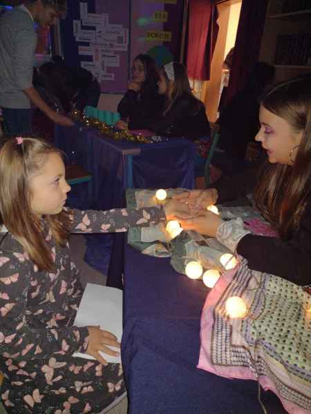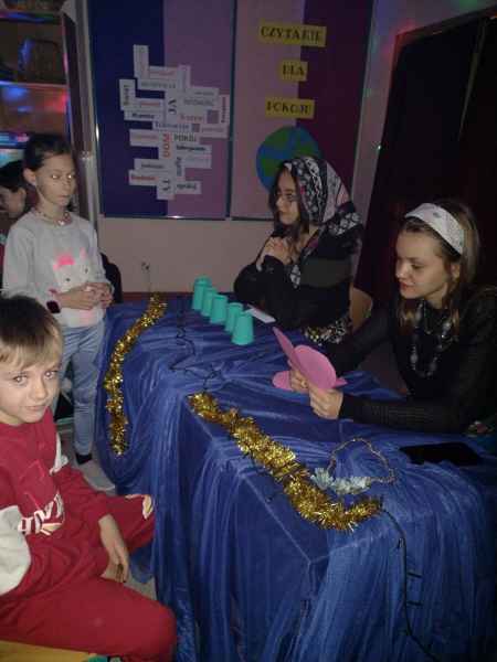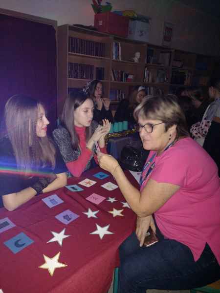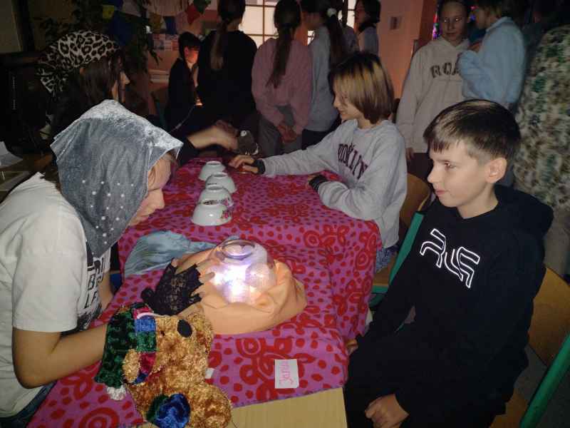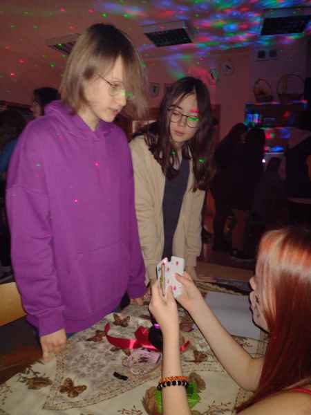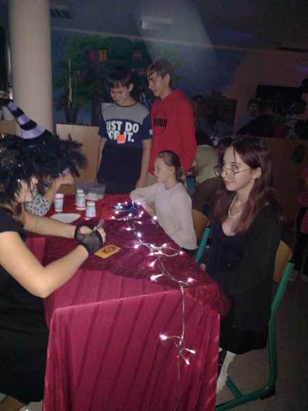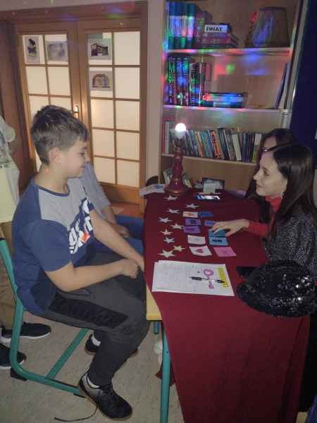 Jak przystało na tzw. Andrzejki, w ten dzień wykonuje się tradycyjnie różne wróżby. W naszej szkole wszystkie klasy od pierwszej do ósmej miały możliwość skorzystania z porady wróżki. Były różne stanowiska z wróżbami: z kart, karteczek, kubeczków, serduszek a nawet wróżenie z linii papilarnych.