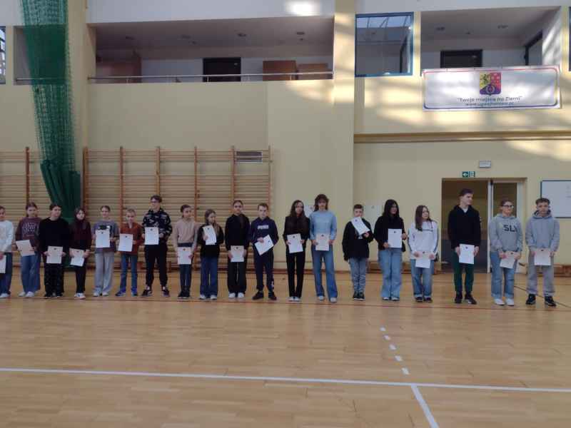W dniu 12 lutego 2025 roku w hali sportowej w naszej szkole odbył się apel porządkowy dla uczniów klas IV - VIII, którego tematem było m.in. podsumowanie wyników w nauce i zachowaniu za I półrocze roku szkolnego 2024/2025. Na początku spotkania Dyrektor Szkoły, pani Bożena Brzuzy,