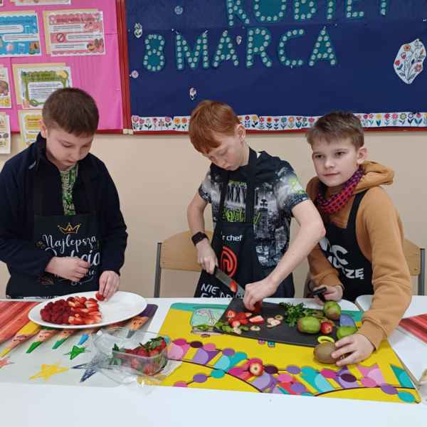 W drugim semestrze klasy 4d rozpoczęły wyjątkowe zajęcia rozwijające pod okiem nauczyciela Bożeny Reszke, które przeniosły uczniów w świat kulinarnych eksperymentów. Uczniowie mieli okazję pracować w grupach, przygotowując pyszne desery i zdrowe przekąski. Wspólna praca pozwoliła im nie tylko na rozwój umiejętności kulinarnych, ale także na naukę współpracy, planowania i organizacji.