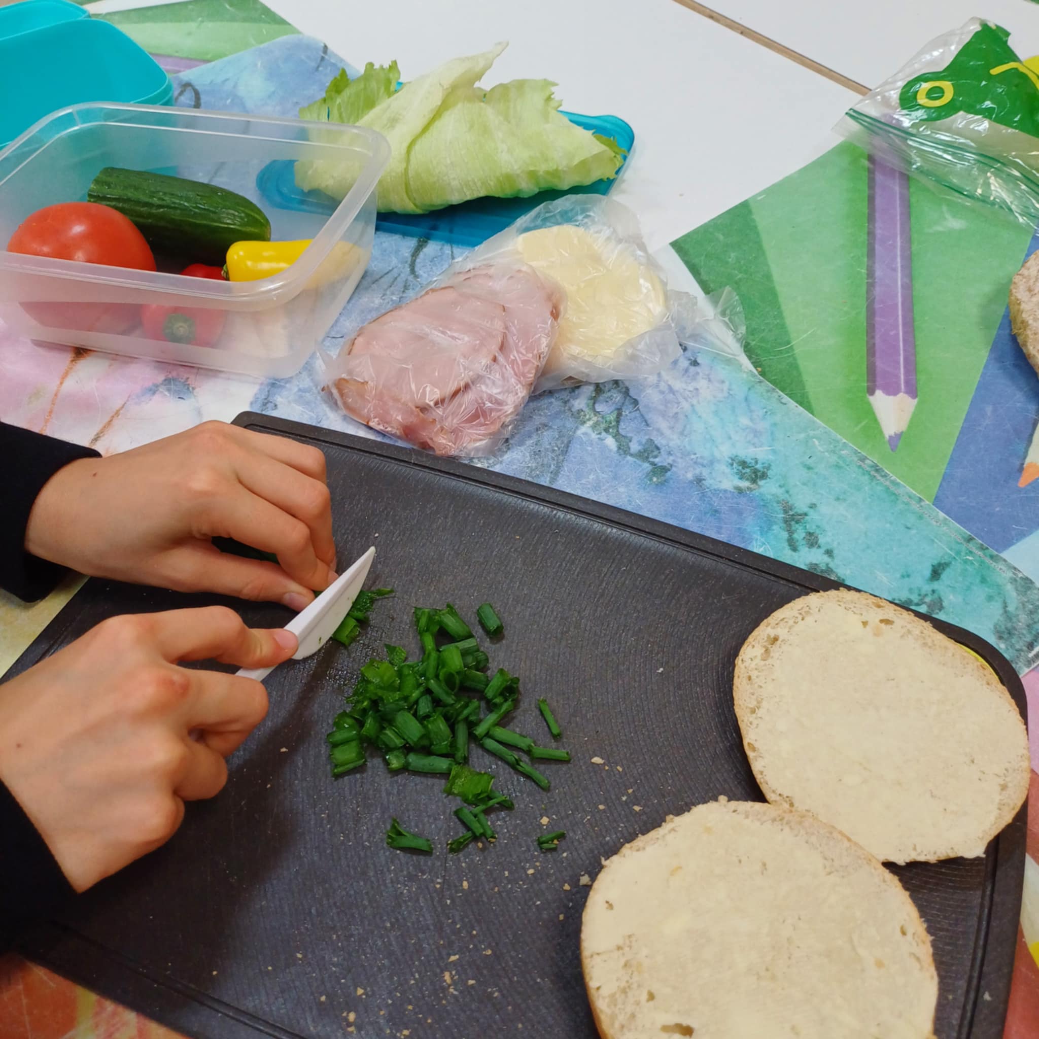 Zgodnie z podstawowymi kierunkami realizacji polityki oświatowej państwa na rok szkolny 2024/2025 nasza szkoła podejmuje wiele działań, których celem jest edukacja prozdrowotna w szkole - kształtowanie zachowań służących zdrowiu. W czwartek, 10 października, uczniowie klasy 4 a na zajęciach rozwijających pod czujnym okiem nauczyciela, pani Bożeny Reszke, podjęli wielkie wyzwanie: postanowili zrobić pyszne, zdrowe i kolorowe kanapki.