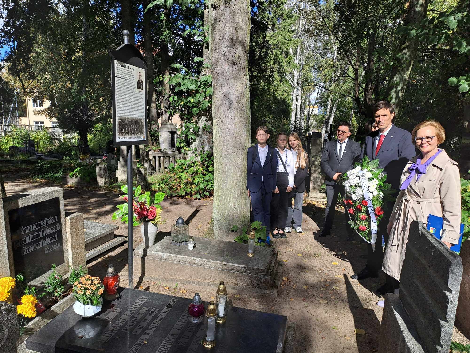 27.09 br. upamietniliśmy mjr Edwarda Łakomego, pierwszego wójta Gminy Wejherowo -Wieś. Chłopcy z 4b zapalili znicze przed pamiątkową tablicą, która znajduje się przed wejściem do SP2. Zosia, Marta i Mateusz z 6f pojechali do Wejherowa, by odwiedzić Stary Cmentarz, na którym po ekshumacji w Piaśnicy, spoczął Edward Łakomy.