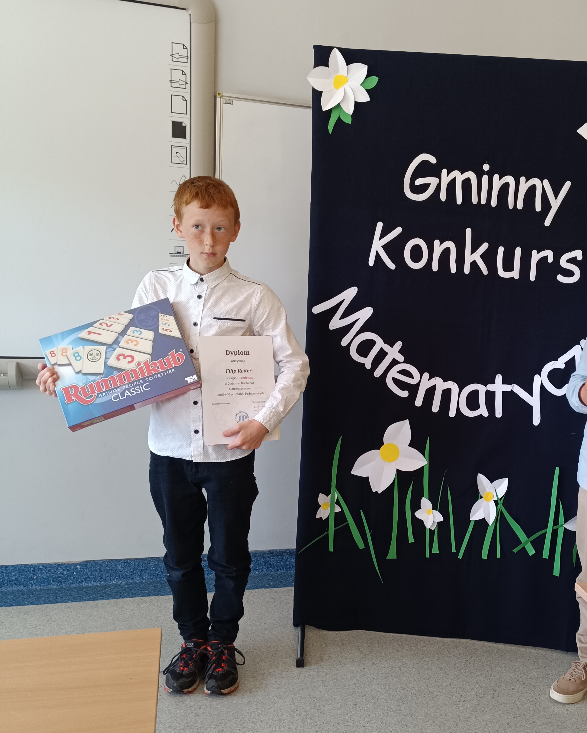 W dniu 08 maja 2024r., w Szkole Podstawowej w Gościcinie im. mjr. Henryka Sucharskiego odbył się Gminny Konkurs Matematyczny Klas III. Udział w konkursie wzięli Filip Reiter oraz Ignacy Jetke, obaj z klasy 3a, którzy podczas szkolnych eliminacji zdobyli, ex aequo, pierwsze miejsce. Filip Reiter podczas konkursu gminnego zdobył III miejsce, Ignacy zaś V. Serdecznie gratulujemy i życzymy dalszych sukcesów!