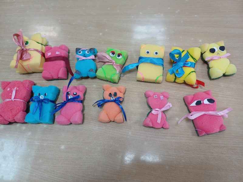 Na zajęciach rozwijających w klasie 5 g,f i 6c pod okiem nauczyciela p. Bożeny Reszke rozwijamy talenty na różne sposoby. Jednym z nich jest tworzenie z gąbki do kąpieli , gąbki do naczyń oraz ręcznika. Tym razem tworzyliśmy Misia, któremu klasa nadała imię -Tuliś.