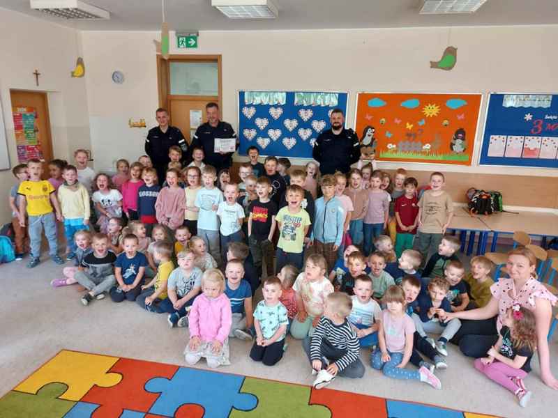 "Halo Panie Policjancie, zapytać się chcemy, Gdy coś złego zobaczymy gdzie dzwonić możemy?