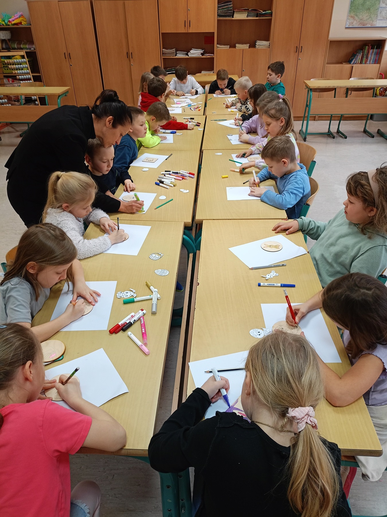 We wtorek 19.03.2024 roku w klasie 2a odbyły się mini warsztaty robienia magnesów. Poprowadziła je Pani Aleksandra Hazuka, która pokazała dzieciom jak własnoręcznie przygotować ozdobę.